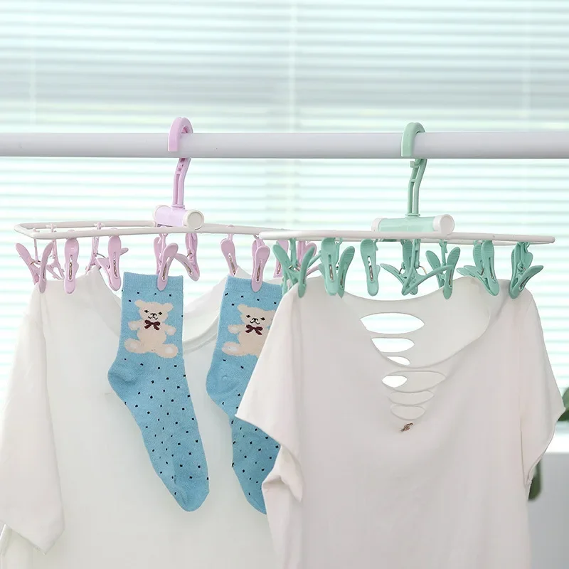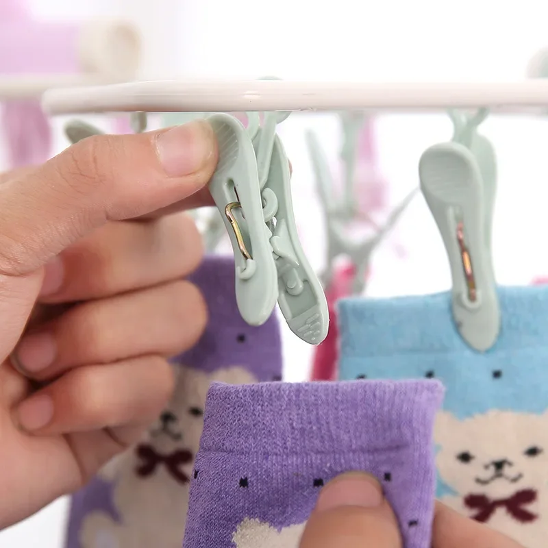 1x multi-funkční skládací věšák na ponožky s 12 klipsy
