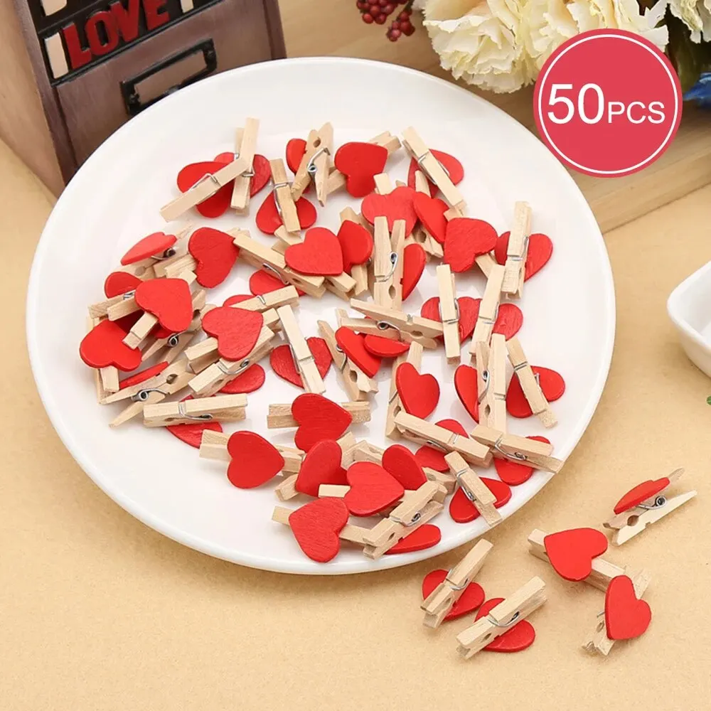 50 ks mini dřevěných kolíčků ve tvaru srdíček