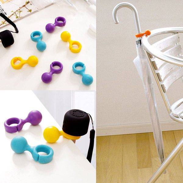 Přenosný držák na deštník je praktickou vychytávkou na cesty i do bytu. Díky využití těžiště stačí držáček s deštníkem jednoduše zavěsit za kraj stolu či poličky a můžete se radovat z této levné vychytávky.