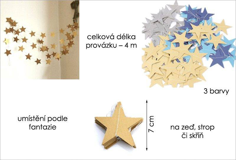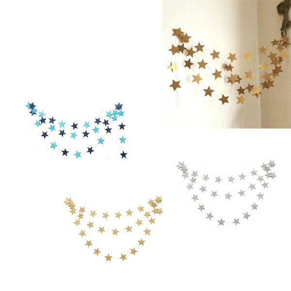 Roztomilá party girlanda s hvězdičkami se hodí na silvestrovské oslavy i jako vánoční girlanda. Dekorace skvěle ozdobí prostor a přidá na příjemné atmosféře.