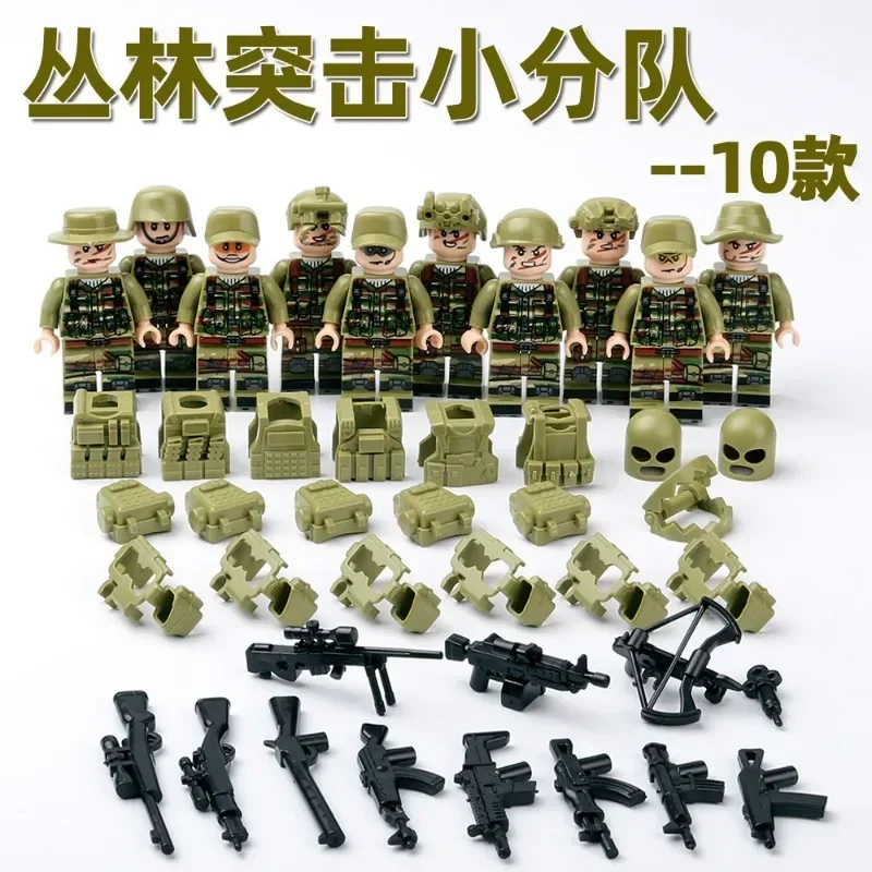 Figurky, stavební kostky, zbraně, doplňky.
